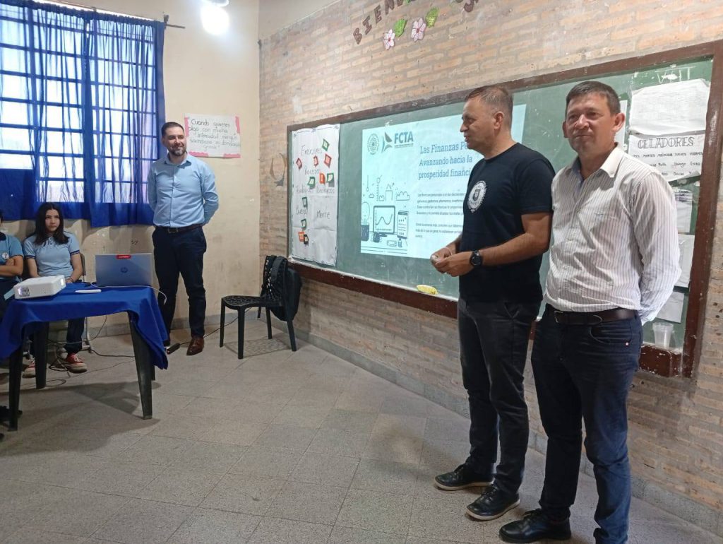 En la tarde del viernes 10 de octubre, estudiantes y docentes del Colegio Nacional Niño Jesús participaron del Taller de Finanzas Inclusivas, desarrollado por la Facultad de Ciencias, Tecnologías y Artes (FCTA) en el marco del programa de extensión universitaria CTA Vincula.