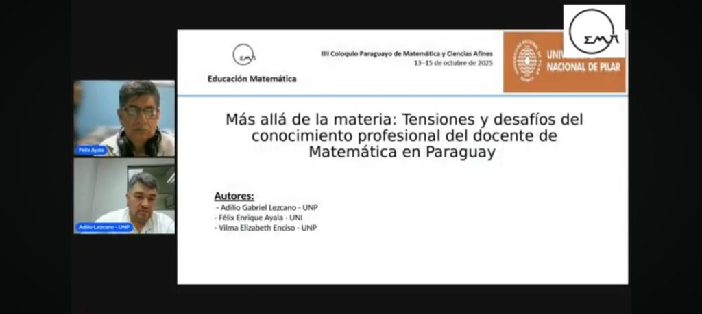 El investigador de la Facultad de Ciencias, Tecnologías y Artes de la Universidad Nacional de Pilar (UNP) presentó los resultados de su estudio en el marco de la ejecución del proyecto “Desarrollo Profesional Docente del Nivel Medio” (PINV01-1012), cofinanciado por el CONACYT, durante el III Coloquio Paraguayo de Matemática y Ciencias Afines, organizado por la Sociedad Matemática Paraguaya.