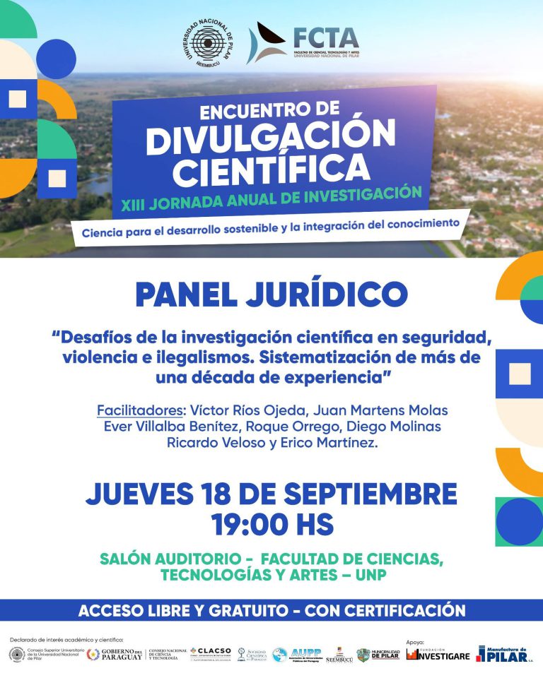 ‘Encuentro de Divulgación Científica – XIII Jornada Anual de Investigación’ de la Facultad de Ciencias, Tecnologías y Artes de la Universidad Nacional de Pilar. – Jueves 18 de setiembre