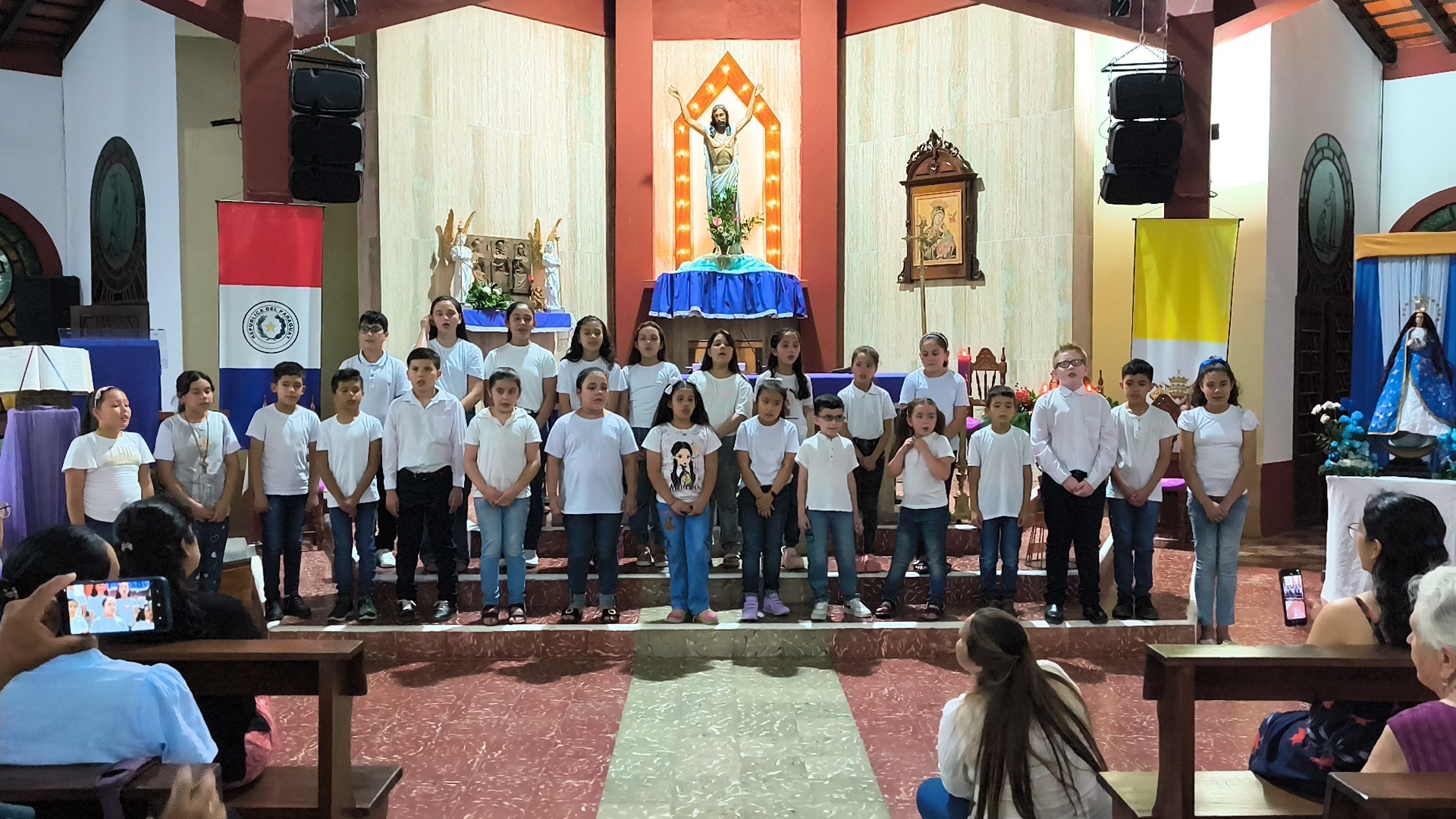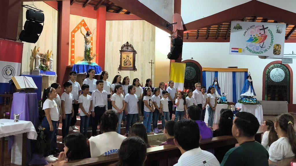 Niños y niñas del Proyecto de Extensión Universitaria Coros Infantiles Comunitarios se presentaron en la noche de hoy en el Musical de Navidad, organizado por la Parroquia del Santísimo Redentor.
